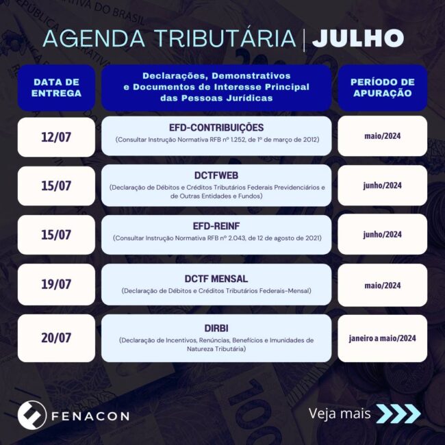 A FENACON relembra as principais obrigações que devem ser enviadas no mês de julho. Atenção aos prazos! Nova obrigação acessória, DIRB, deve ser entregue até o dia 20 de julho Rio Grande do Sul: DASN-SIMEI deve ser enviada até o dia 31 de julho Garanta conformidade com as normas fiscais e garanta o envio correto…