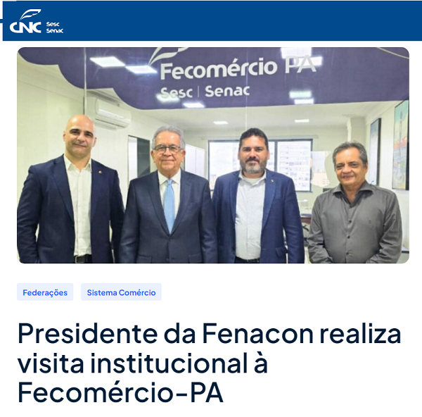 Visita institucional do presidente da FENACON à Fecomércio-PA é destaque no Portal do Comércio da CNC