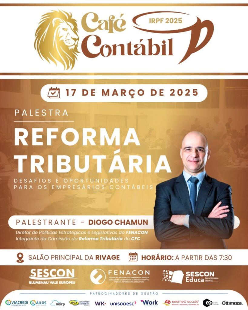 A palestra “Reforma Tributária – Desafios e Oportunidades para os Empresários Contábeis”, com o especialista Diogo Chamun, abordará os principais impactos dessa mudança tão importante para o mercado. Compreenda os desafios e descubra as oportunidades que surgem com a reforma!