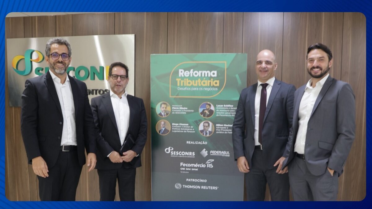 O diretor Legislativo da FENACON, Diogo Chamun, ministrou palestra no Seminário Desafios da Reforma Tributária para os Negócios nessa segunda-feira (18/3). O evento é uma promoção conjunta do SESCON-RS, Fecomércio-RS e da Federasul.