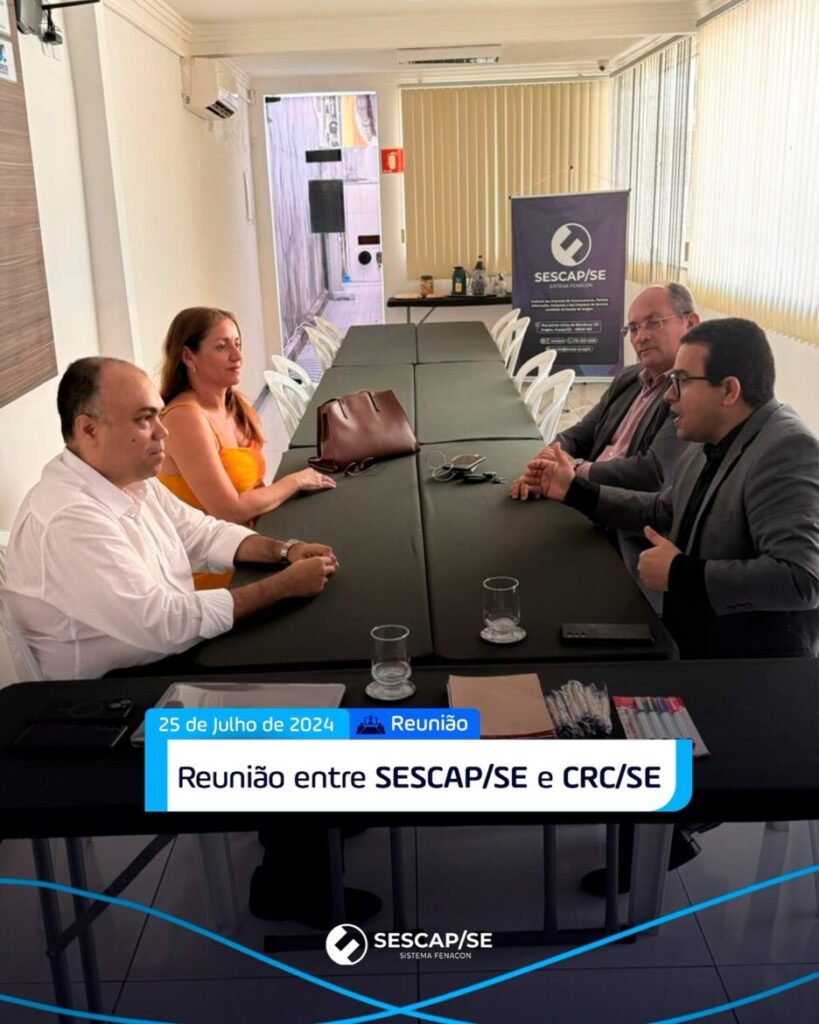 Na tarde da última quinta-feira, dia 25 de julho, o Presidente do Sindicato das Empresas de Serviços Contábeis de Sergipe (SESCAP/SE), Sr. Francinaldo Rodrigues, acompanhado pela Vice-Presidente, Sra. Edvânia Alves, reuniu-se com o Presidente do Conselho Regional de Contabilidade de Sergipe (CRC/SE), Sr. Ionas Mariano, e o Vice-Presidente de Desenvolvimento Profissional, Sr. Jenilton Gomes. O encontro teve como objetivo principal a discussão e o alinhamento das ações institucionais entre as duas entidades.