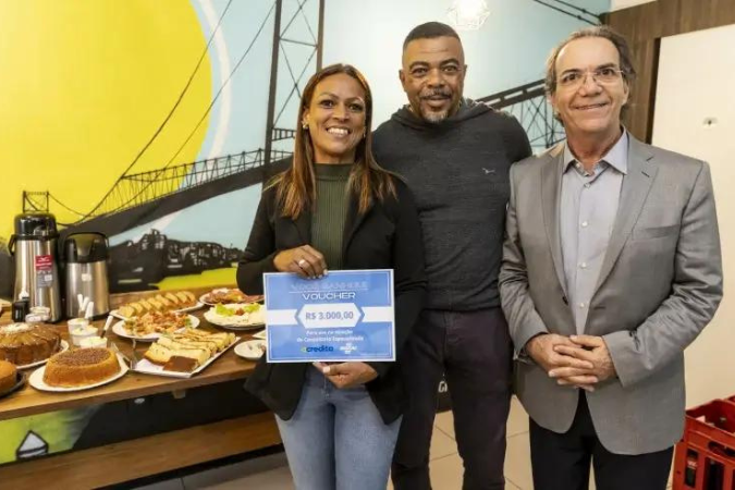 Na tarde desta segunda-feira, a Priscila e o Marco receberam das mãos do presidente do Sebrae um voucher de R$ 3 mil para se beneficiar das consultorias oferecidas pelo Sistema Sebrae, incluindo a de crédito assistido, para saber como aplicar os recursos na empresa.