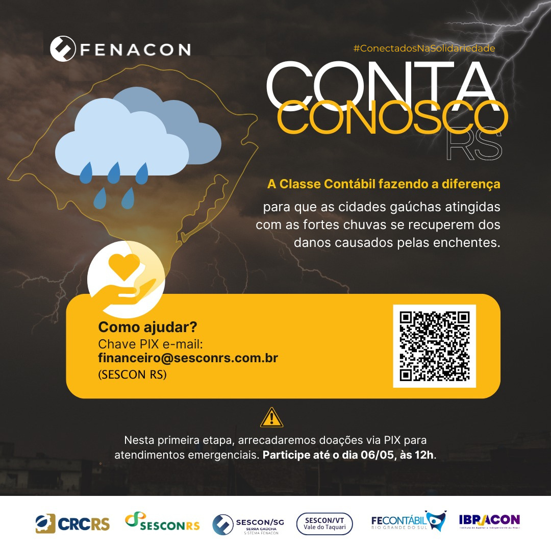 Por esse motivo, as entidades contábeis do estado e a FENACON se uniram numa campanha de arrecadação para movimentar a classe e a sociedade em prol de um bem maior.