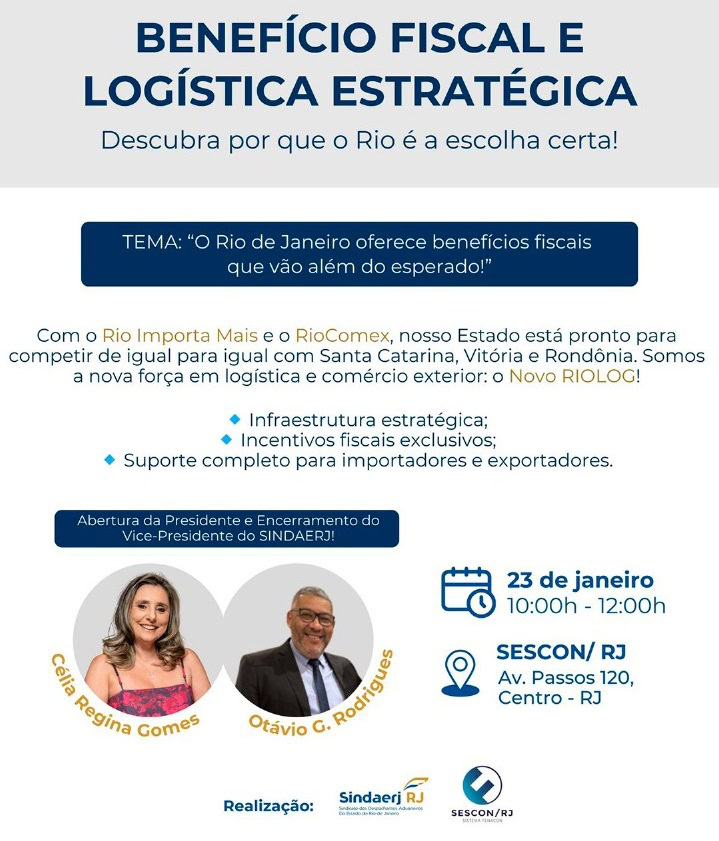 Participe deste encontro exclusivo e saiba mais sobre como o Rio Importa Mais e o RioComex transformam o estado do Rio de Janeiro em uma potência logística e de comércio exterior, competindo de igual para igual com outras regiões do país.
