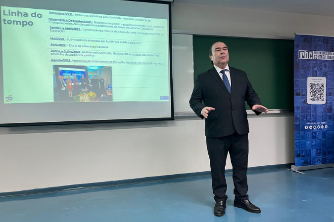 A partir do tema “Implementação das Novas Diretrizes Curriculares (NDCs) do Curso de Ciências Contábeis”, ele abordou todo o processo coordenado pela Comissão de Educação Profissional Continuada do Sistema CFC/CRCs para a construção e aprovação das novas DCN.