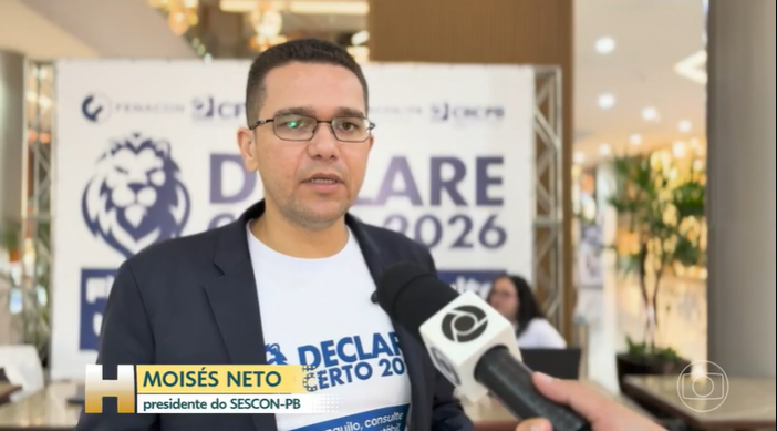 Um dos destaques da matéria foi a participação do presidente do SESCON-PB, Moisés Neto, que reforçou a importância da orientação profissional para evitar inconsistências e problemas com o Fisco.