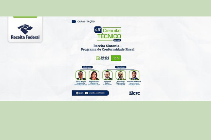 A Secretaria da Receita Federal participará, no próximo dia 29/4, às 15 horas, do 48º Circuito Técnico realizado pelo Conselho Federal de Contabilidade (CFC), cujo tema será Receita Sintonia – Programa de Conformidade Fiscal.