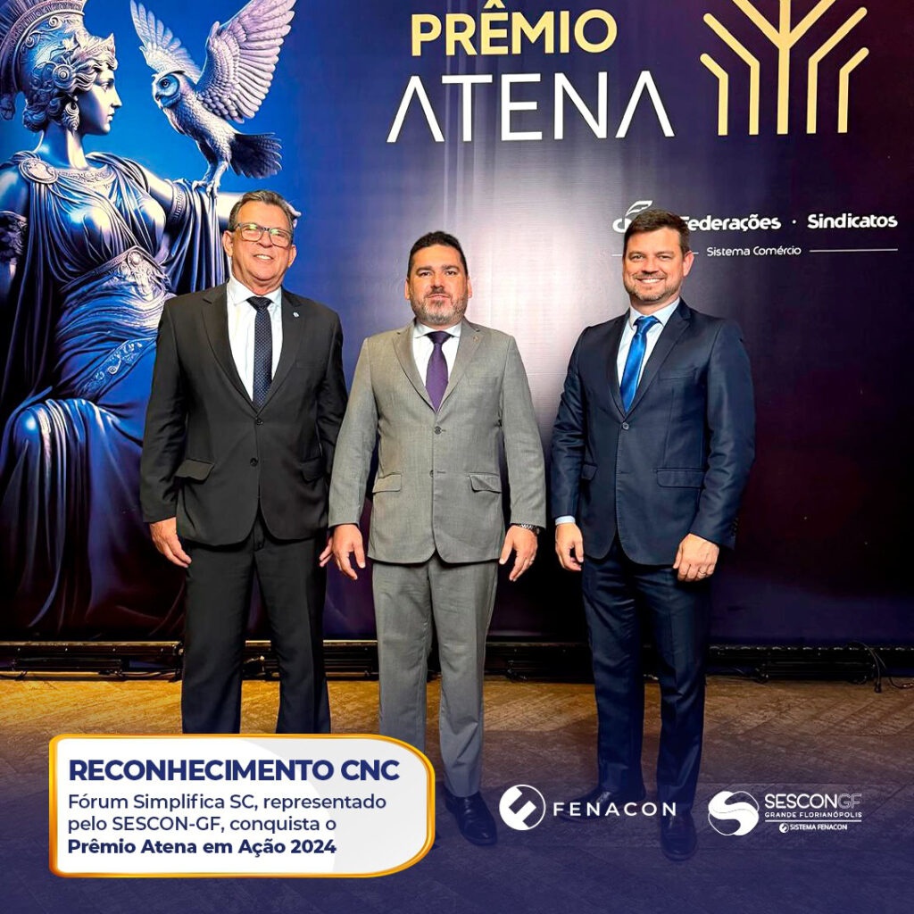 O SESCON GF, representante do Sistema Fenacon, recebeu o “Troféu Atena em Ação” da Confederação Nacional do Comércio de Bens, Serviços e Turismo (CNC), em São Paulo. A premiação, realizada no Palácio Tangará, premiou a entidade pela coordenação do “Fórum Simplifica”, entre os anos de 2015 a 2023.