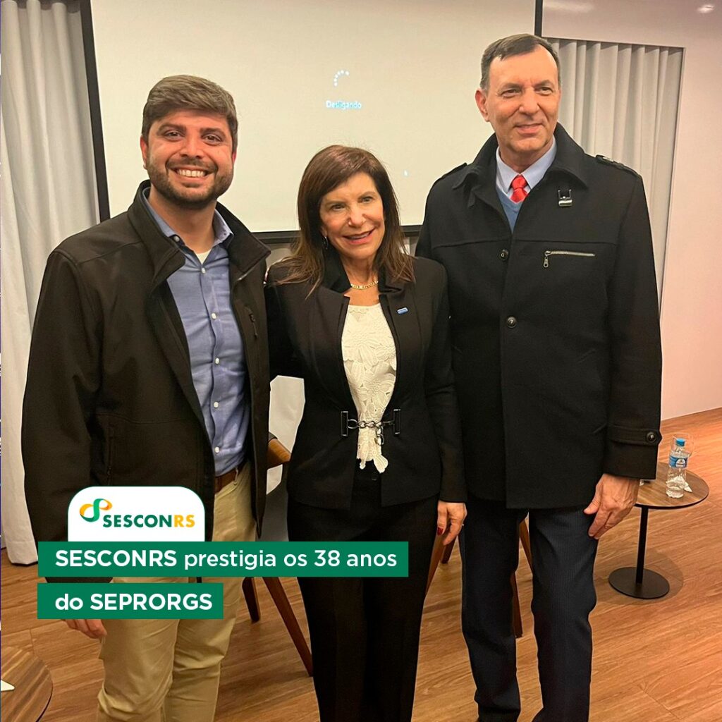 No último dia 5, o Vice-presidente Legislativo e Institucional do SESCON-RS, Celso Luft, prestigiou o evento de 38 anos do SEPRORGS. A ocasião teve como tema de debate o futuro do empreendedorismo e das startups no RS pós-tragédia. Na foto acima, a Presidente do SEPRORGS, Marice Fronchetti e Pedro Valério, Diretor Executivo do Instituto Caldeira.