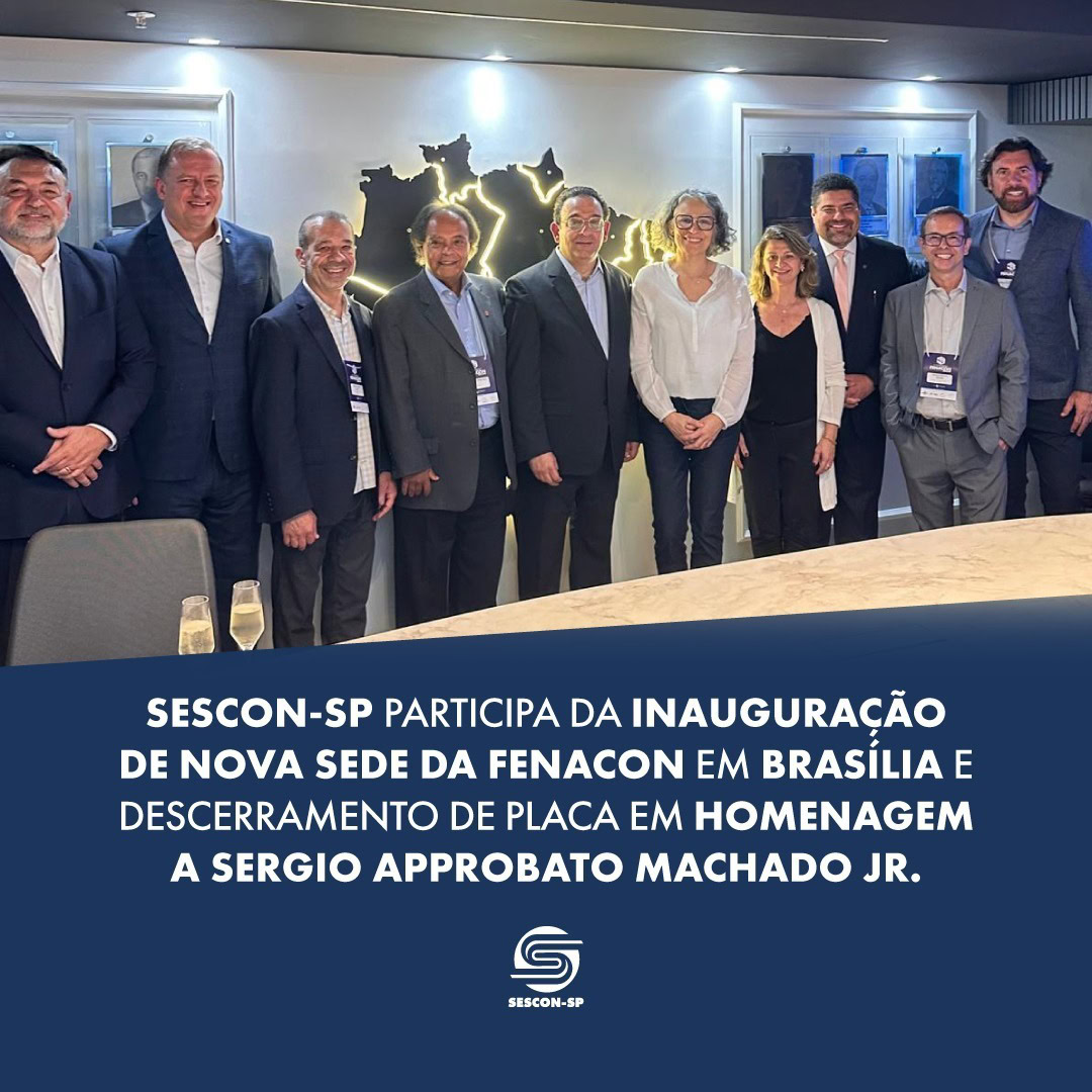 Na quinta-feira, 5 de dezembro, o Sescon-SP esteve presente na inauguração das novas instalações da Fenacon em Brasília. O evento contou com a presença de representantes dos 40 SESCAPs e SESCONs pertencentes ao Sistema Fenacon.
